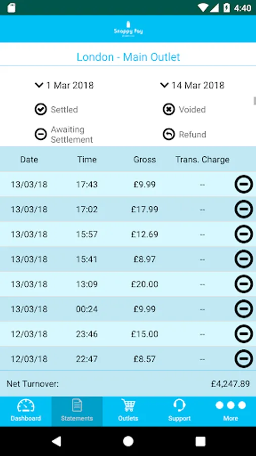 The App enables you to monitor your card transactions in real-time. It gives detailed information on transactions that are pending and have paid to your bank account so you are fully up to date as to when your payments will arrive.