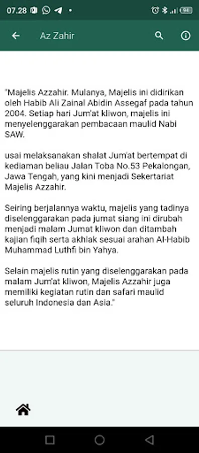 Az zahir: Habib Biddin application is an application that aims to be useful for lovers of sholawat on earth in Indonesia in particular and in the world in general.