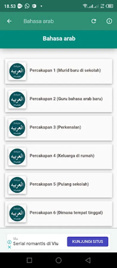 This complete Arabic conversation application is very easy to use as a basic Arabic for those who want to start from the basics, both for those who are studying and those who already understand Arabic, to serve as a learning reference.