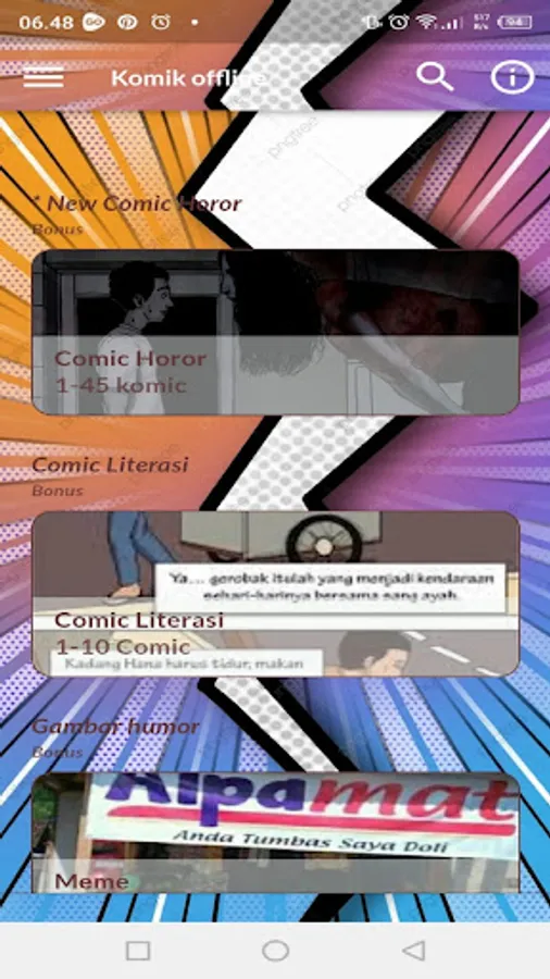 The Indo Comic Collection application is a collection of various types of comics and humor that we have developed to be able to entertain your daily activities, friends, I hope this is entertaining and useful, here is some basic information: