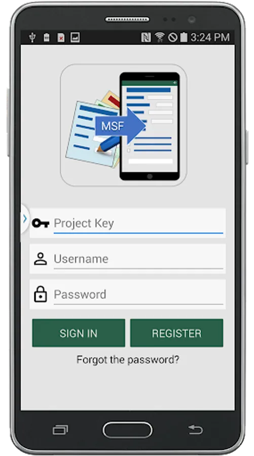 Authorized end users can Sign in on MSF by providing appropriate project code, userid and password. After end users have logged in for the first time, the offline map and all query forms for projects to which they have been assigned will be stored on the device and the app will open to the principal view.