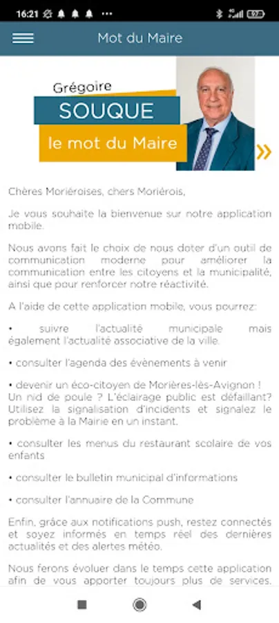 This application is a real communication tool, it has to evolve over time to improve the services put in place; Please do not hesitate to send us your comments and suggestions.