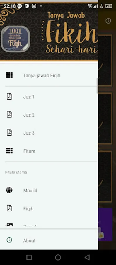 This application is an application that contains knowledge of fiqh which focuses on questions and answers about fiqh, for a list of contents please look at the screen display at the bottom.