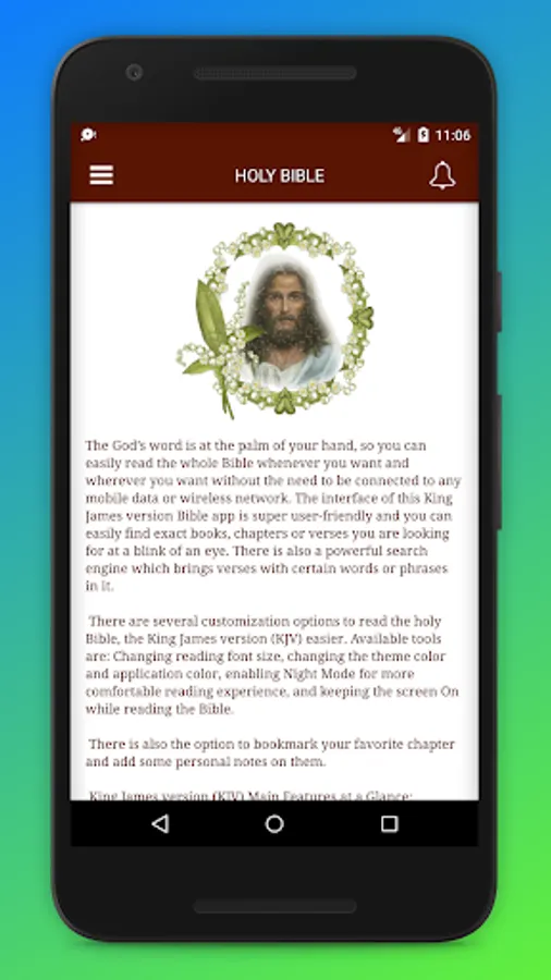 Download Holy Bible King James (KJV) for free and let us know about any bugs, feature requests or any other suggestions. Your feedback is valuable to us and stay tuned for more features and options.