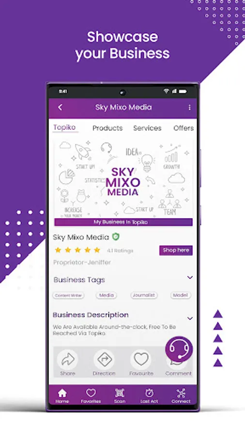 Topiko helps you do that with ease. You can ask your customers and potential customers to tag your business in the Topiko app with a simple share button. With our cutting-edge QR code solution, you can tag both online and walk-in customers and stay in touch with them at all times.