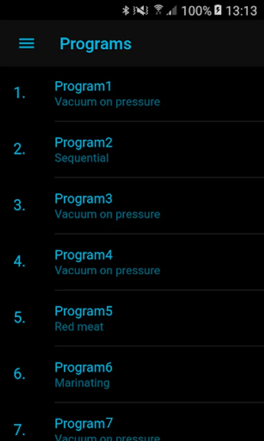 The VacAssist app is perfect for programming standard settings on your vacuum packaging machine in order to realise a maximal end vacuum (99.8%) for standard products, such as meat, fish, fruits and vegetables. However, this app also has some pre-set programs for specific products that you can further personalize, such as sharp products, ready meals, liquids and fluids, products with a lot of trapped air inside, and marinated products.
