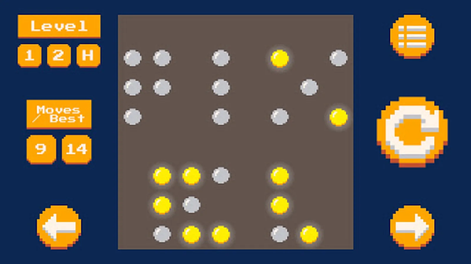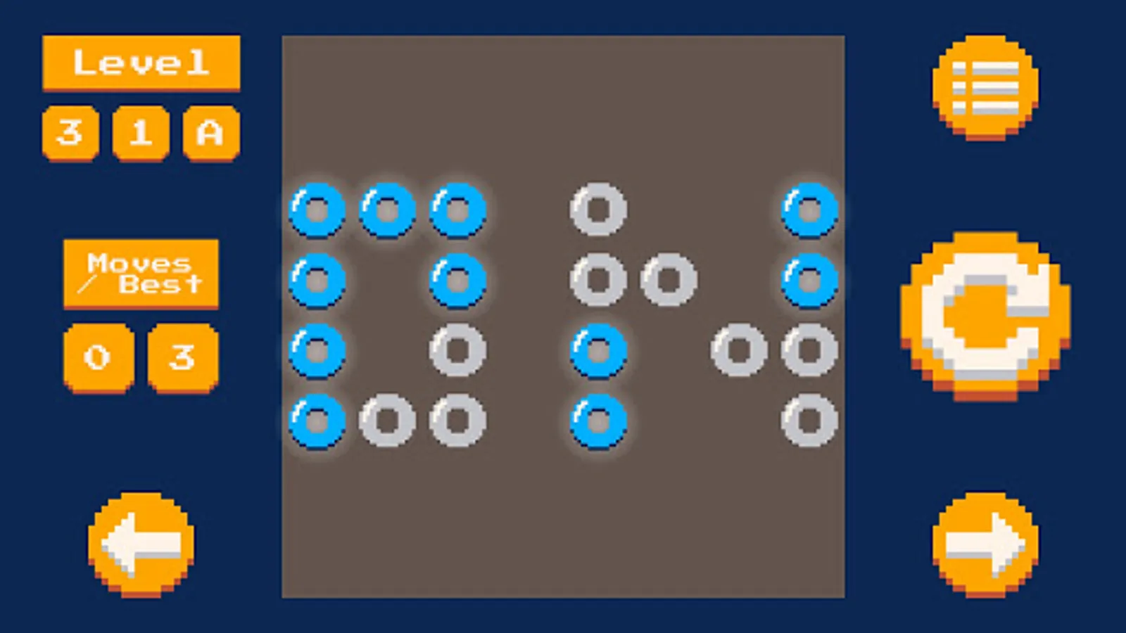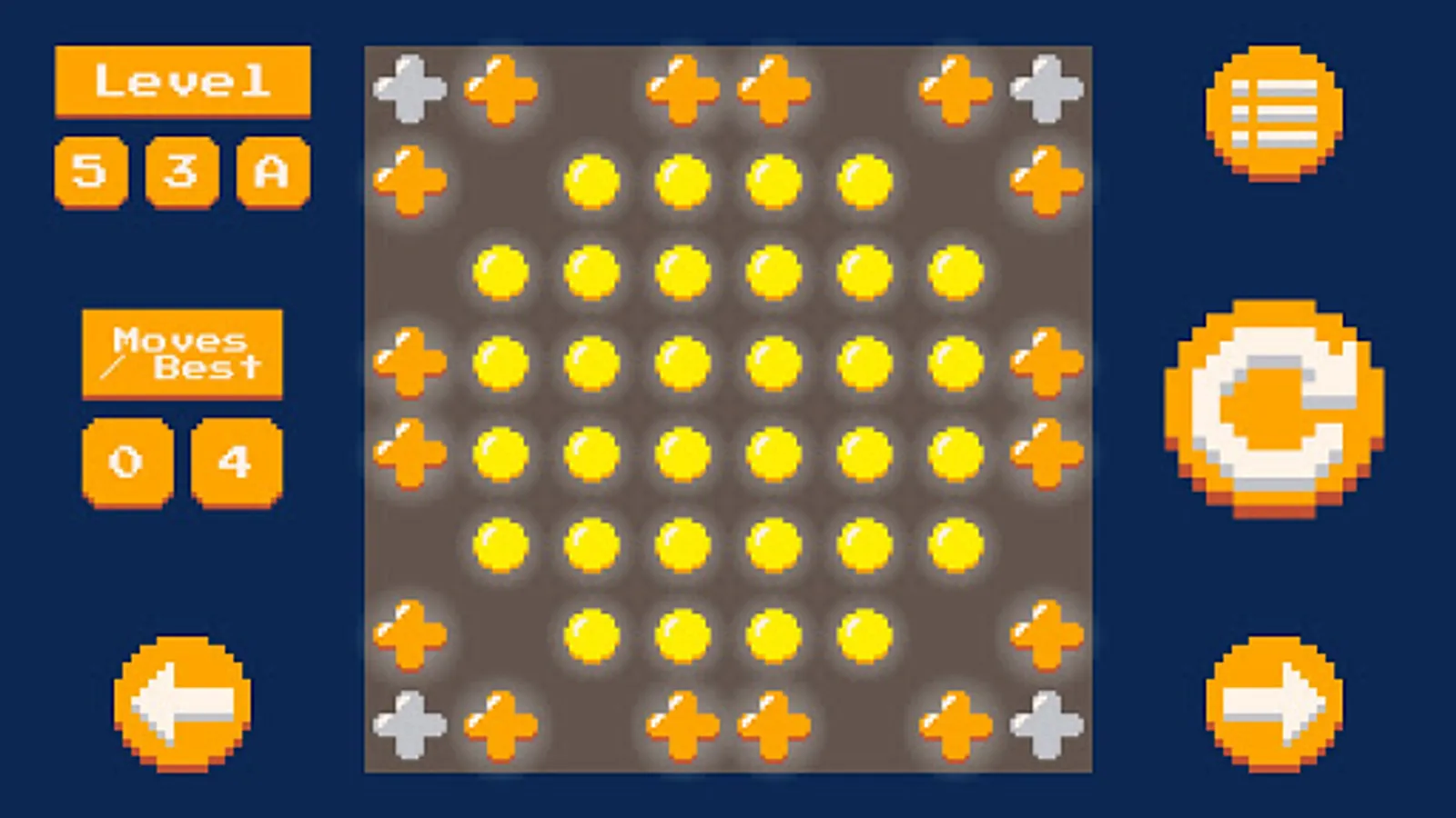 In the On Pixels game the goal is to leave all the lights on at the same time, using the minimum amount of movements for this.