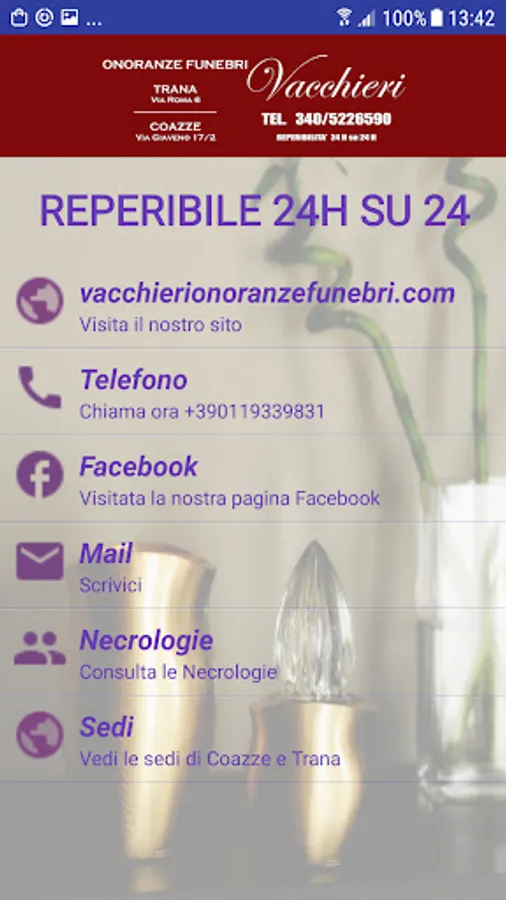 HONORANZE FUNEBRI VACCHIERI was born in COAZZE in 2005 to offer a point of reference to the population that for decades has been without an activity in the service of the painful, having to search remotely with difficulty the necessary support to face a delicate moment.