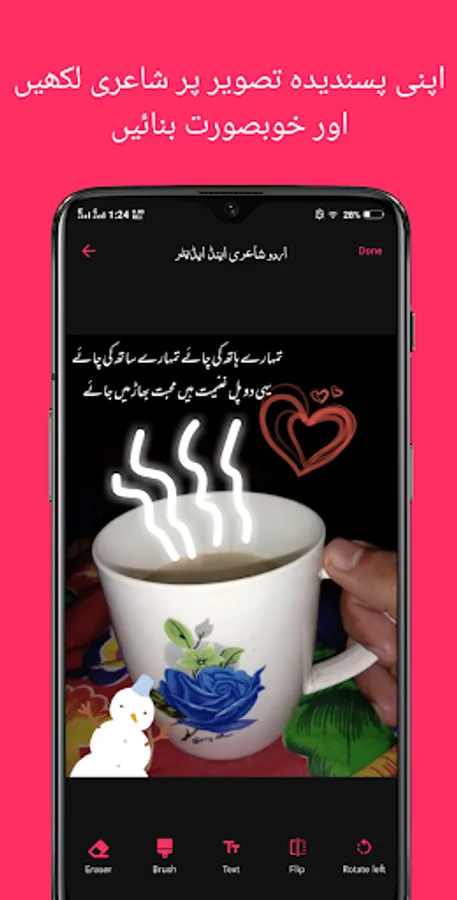 Enjoy the Urdu Shayari & Editor app to write the poetry on the photo.