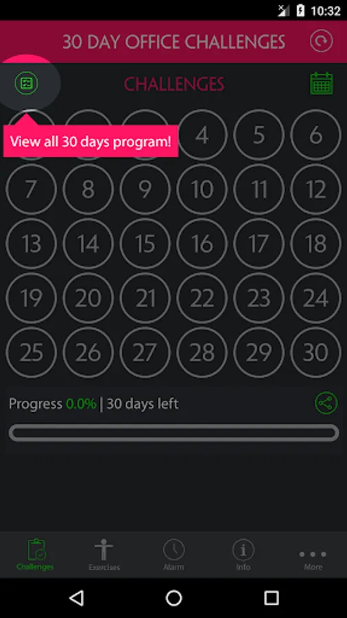 ► The 30 Day Office Challenge is a simple 30 day exercise plan, where you do a set number of ab exercises each day with rest days thrown in! The workout increases intensity slowly and day 30 will test anyone. The app is suitable for both men and women of any ages.