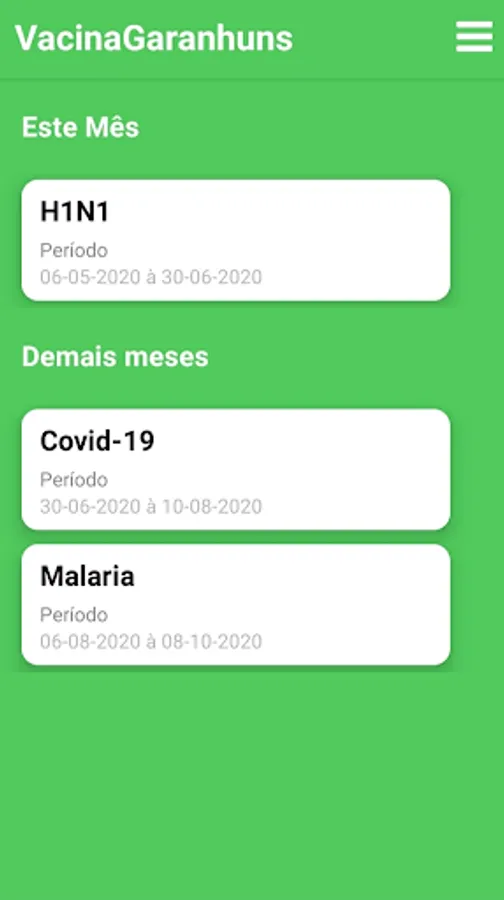 - Access vaccine campaigns available in the current month and in the other months.