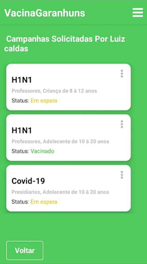 VacinaGaranhuns is an application for smartphones developed by the Federal University of Agreste of Pernambuco (www.ufape.edu.br), through the Multidisciplinary Laboratory of Social Technologies (www.lmts.uag.ufrpe.br), sponsored by the Municipal Department of Education de Garanhuns, through the Municipal Health Fund, in order to support vaccination actions in that municipality. Among the main functionalities of the application are: