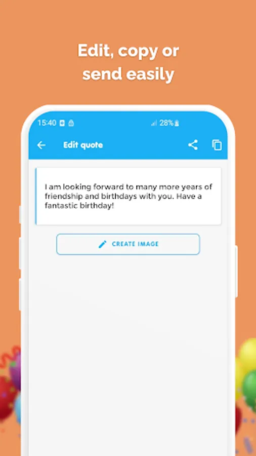 With the Birthday Quotes app, spreading happiness is just a click away! Easily copy and send heartfelt quotes to your loved ones, or effortlessly share them on your favorite social platforms. šš