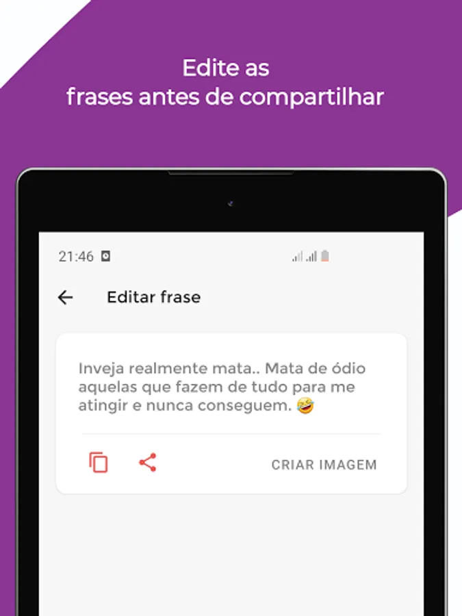 With this application installed, you will have hundreds of indirect WhatsApp statuses to post on Instagram, Facebook, Twitter, use as captions for photos or wherever you prefer.