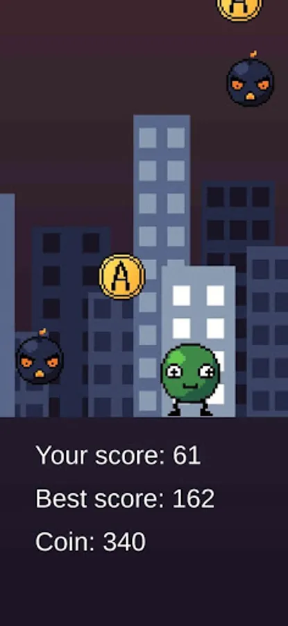 Герой выживает спасаясь от бомб и собирая драгоценные монеты, за которые в последствии он будет вознагражден