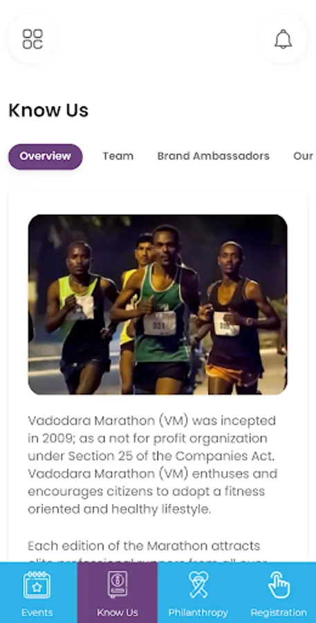 Vadodara Marathon (VM) was incepted in 2009; as a not for profit organization under Section 25 of the Companies Act. Vadodara Marathon (VM) enthuses and encourages citizens to adopt a fitness oriented and healthy lifestyle.