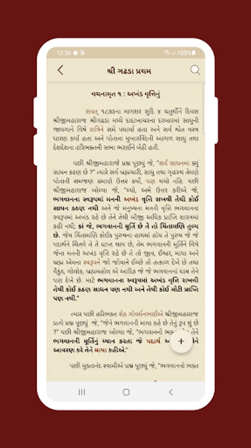 Recognizing the advent of digital media and its usefulness to masses, Shri Swaminarayan Mandir Vadtal Sansthan with the blessing of Acharya Maharaj Shree Rakeshprasadji Maharaj initiated Scriptures Digitization Project. As part of this project, the Vadtal Sansthan is introducing a mobile app “Vadtaldham Book” to bring you instant access to the scriptures anytime anywhere. The app has many convenient and useful features, like, ability to search words in the scriptures, ability to ask questions in the discussion forum, features to facilitate easy night reading, bookmark, etc.