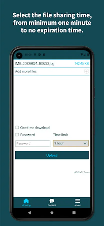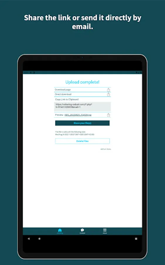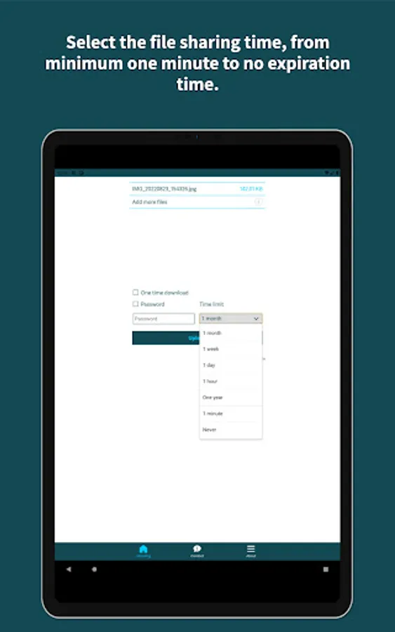 2) Select the validity time of the files and if you want you can also add a password in order to protect the files.