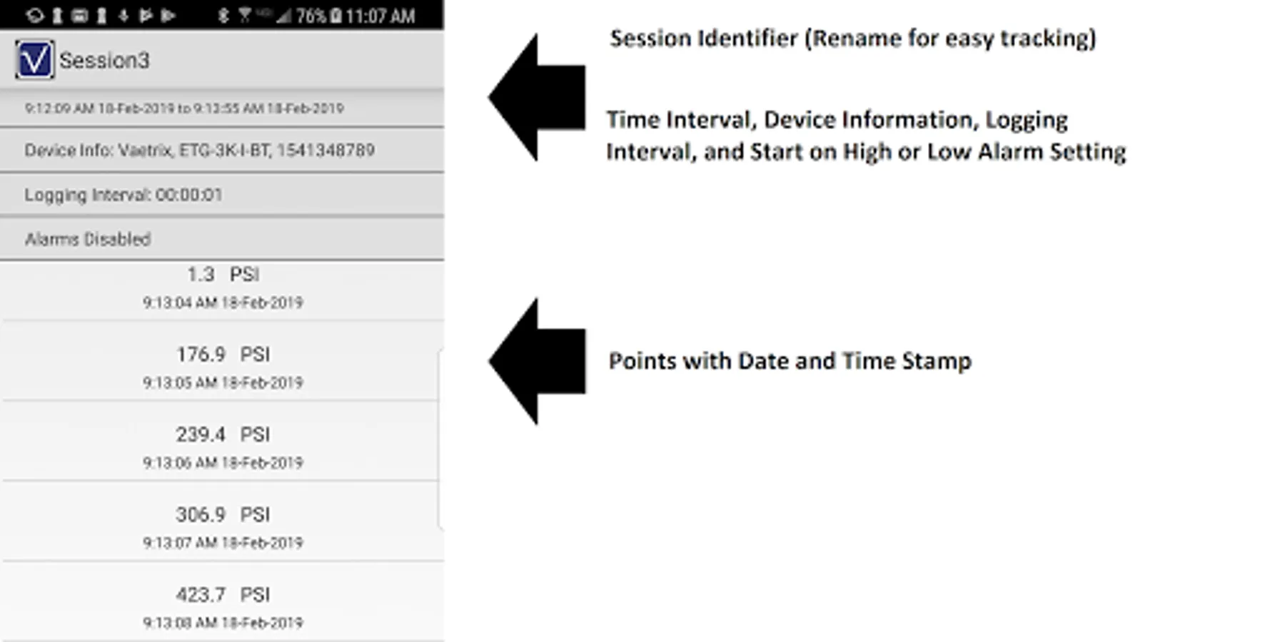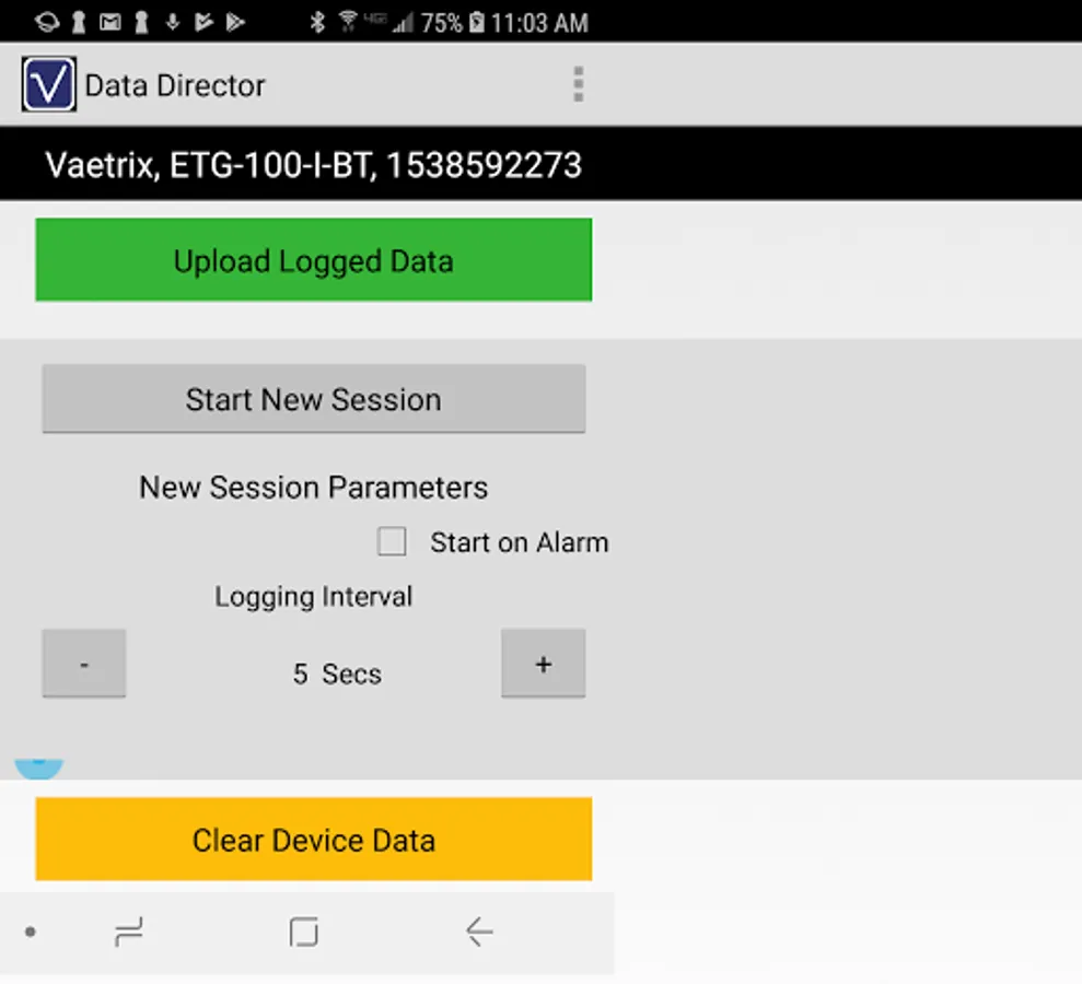 Use the free Vaetrix Data Director to start, configure, and stop data logging remotely live on all Vaetrix ETG series products equipped with Bluetooth communications. Detect pressure trends using the built-in graphing function or view the individual data points with date and time stamp. Automatically start sessions based on pressure alarms or change test configurations all from your phone. Take confidence in your readings as all Vaetrix ETG series products are calibrated at the factory to a known pressure standard traceable to the National Institute of Standards and Technology (NIST). This package is ideal for small data sets when you need to view measurement results immediately with management for quick decisions.