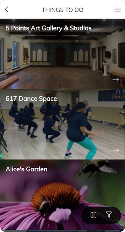 *List and map views, with options for categories and nearest businesses