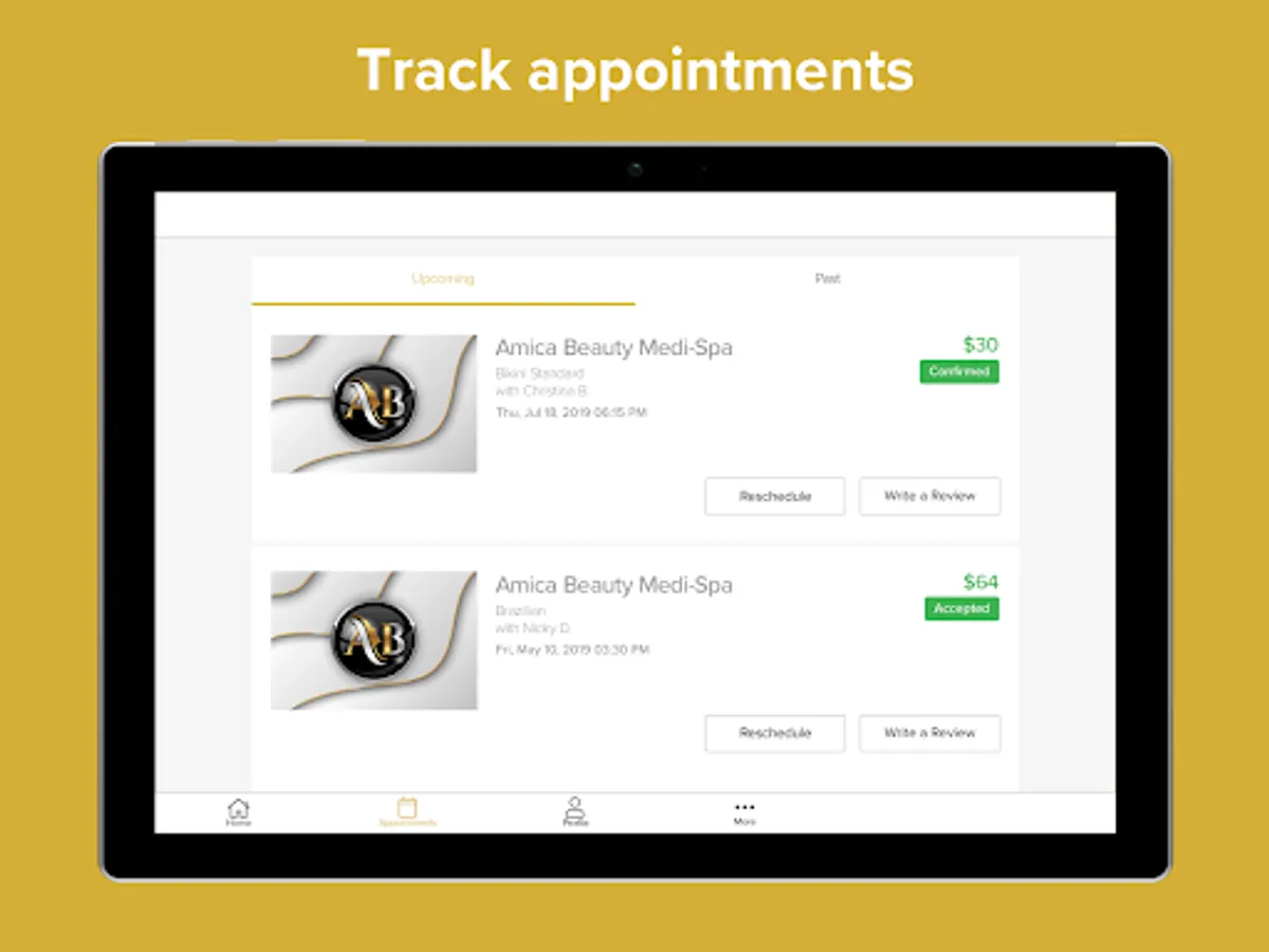 Your next appointment is just a few taps away — download the Amica Beauty Medi-Spa app for free today.