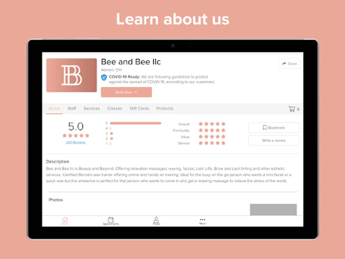 With the Bee and Bee llc mobile app, booking services in the Warren, OH area is easier than ever!