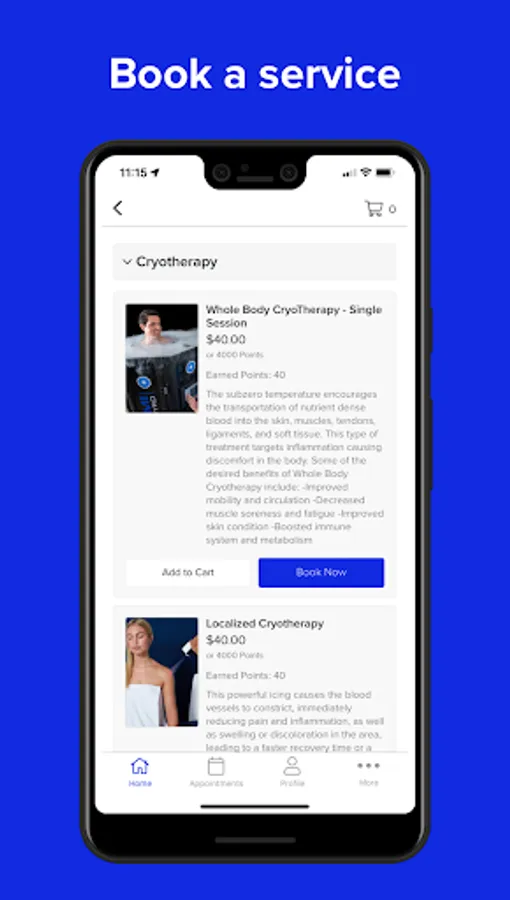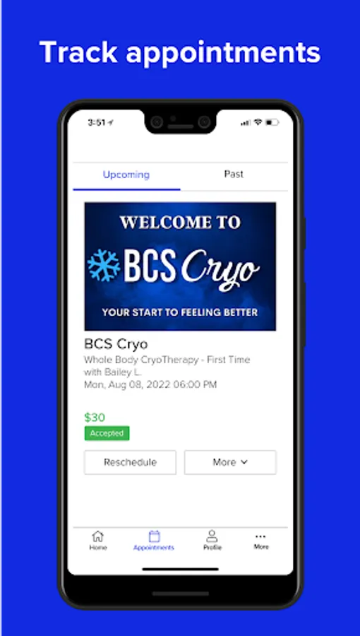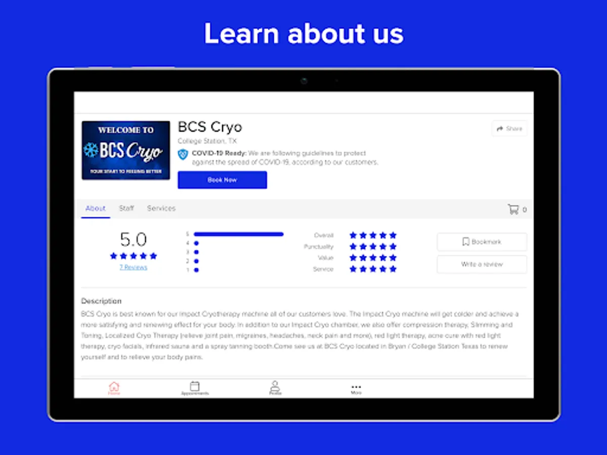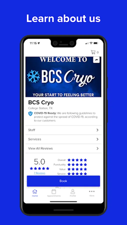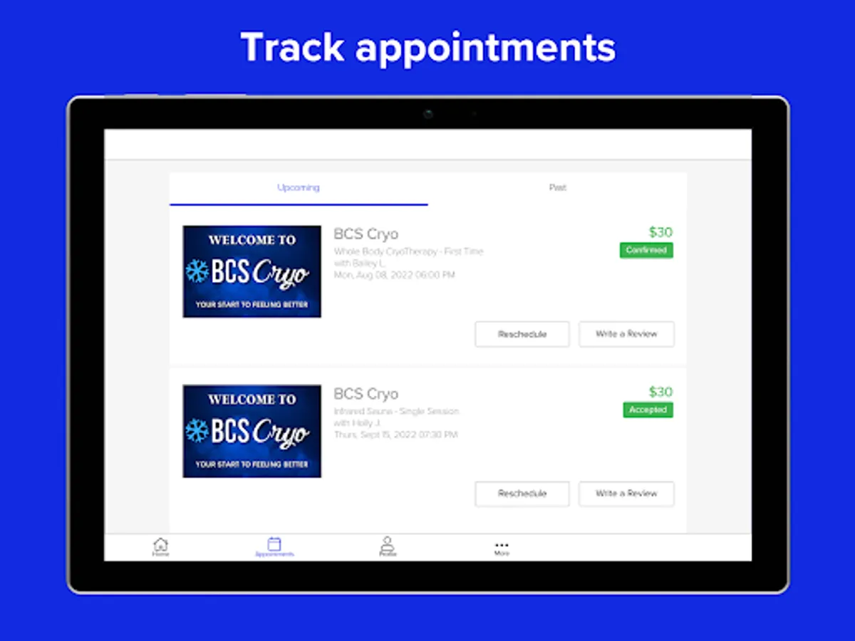 With the BCS Cryo mobile app, booking services in the College Station, TX area is easier than ever!