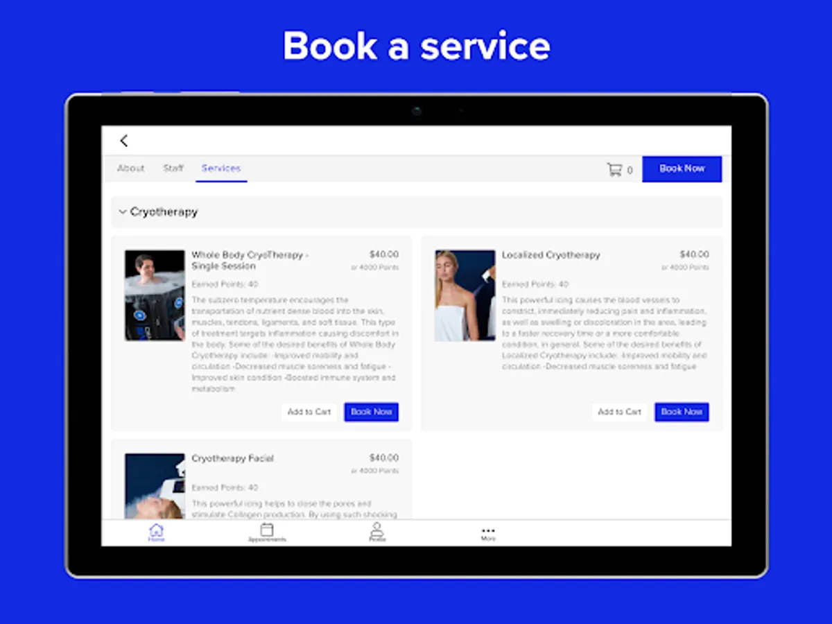 • Book cryotherapy services with your favorite service provider