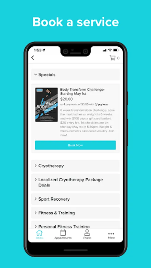 • Book cryotherapy, recovery services, and fitness training with your favorite service provider or instructor