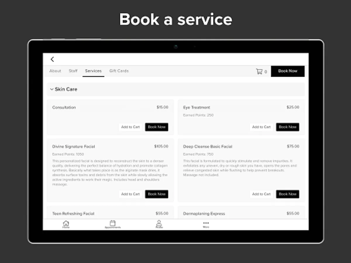 • Book skin care, facials, hair removal, and other spa services with your favorite service provider