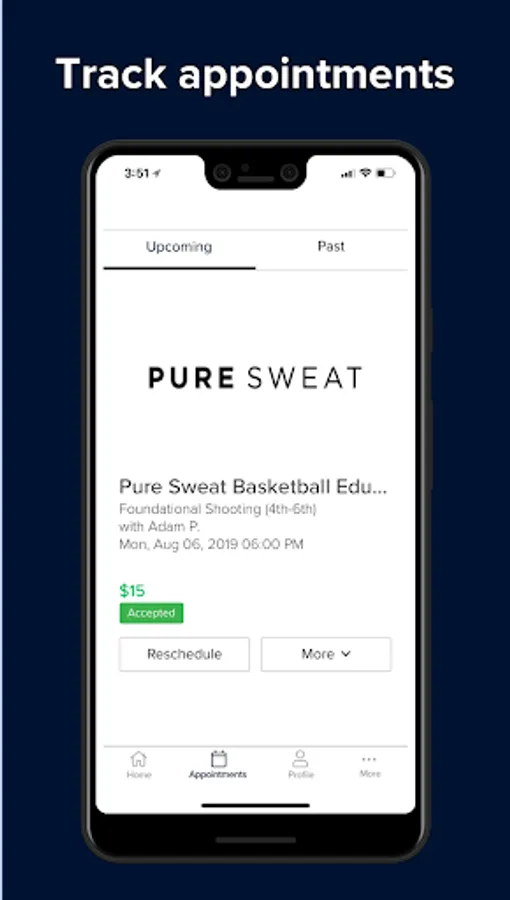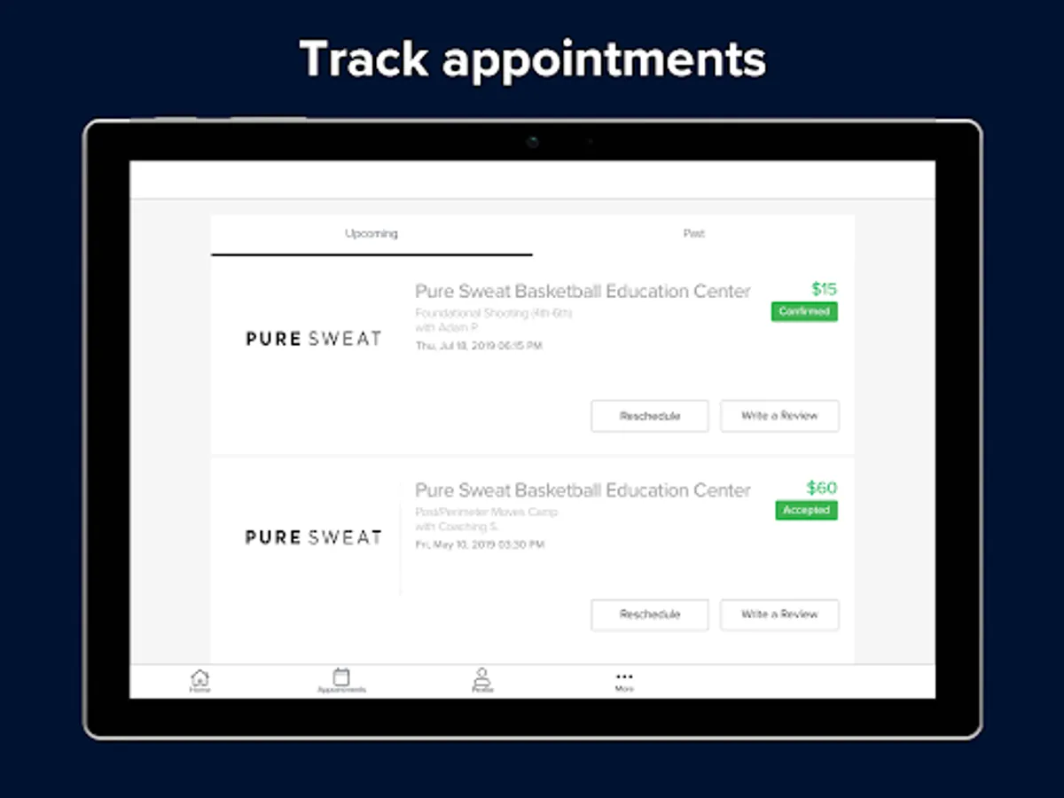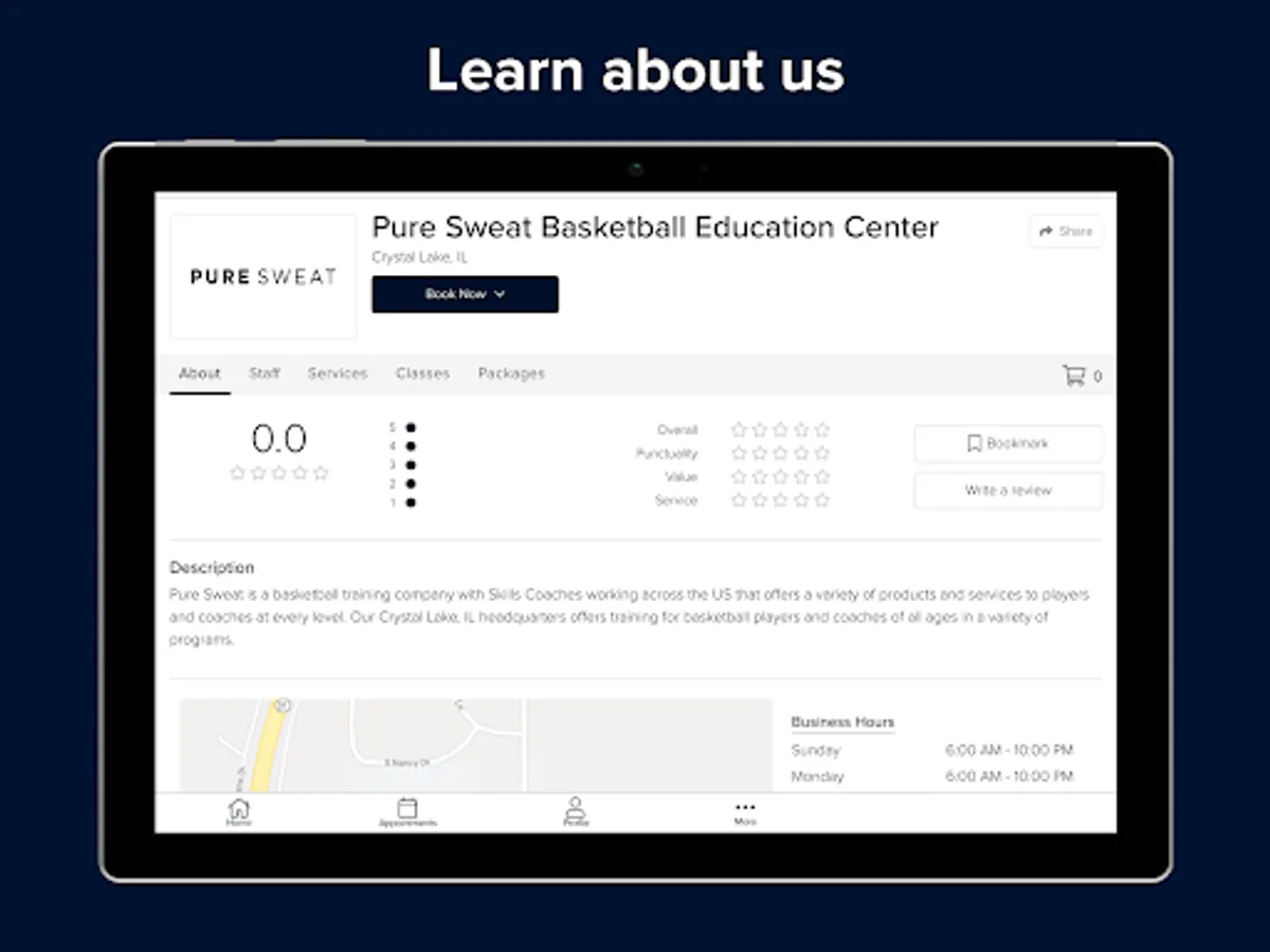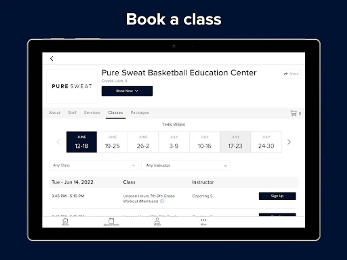 With the Pure Sweat Basketball Education Center mobile app, booking classes in the Crystal Lake, IL area is easier than ever!