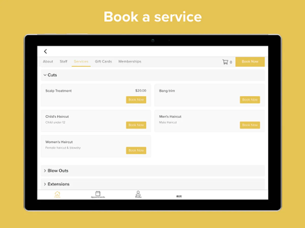 • Book hair color, cuts, and other salon services with your favorite service provider