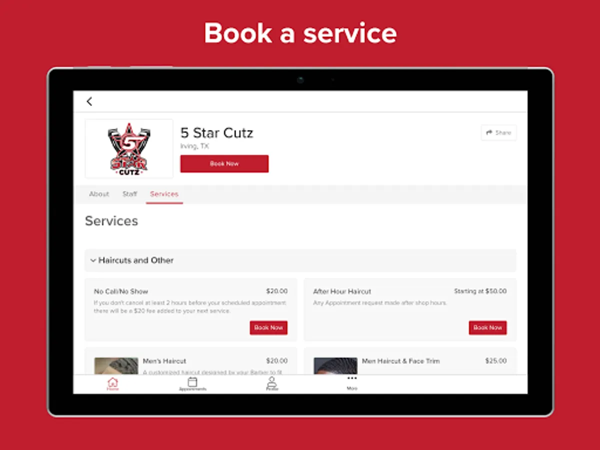 With the 5 Star Cutz mobile app, booking services in the Dallas and Fort Worth area is easier than ever!