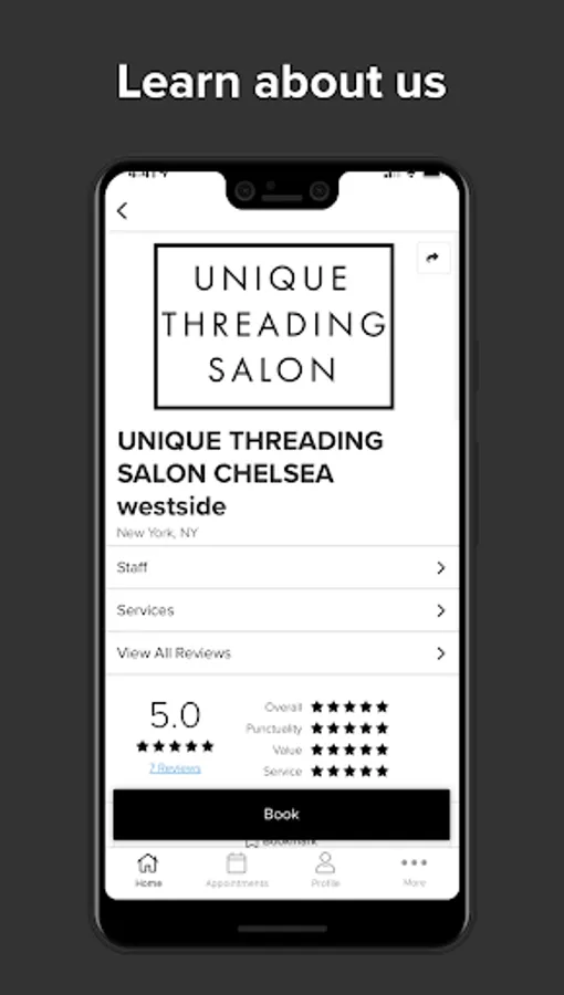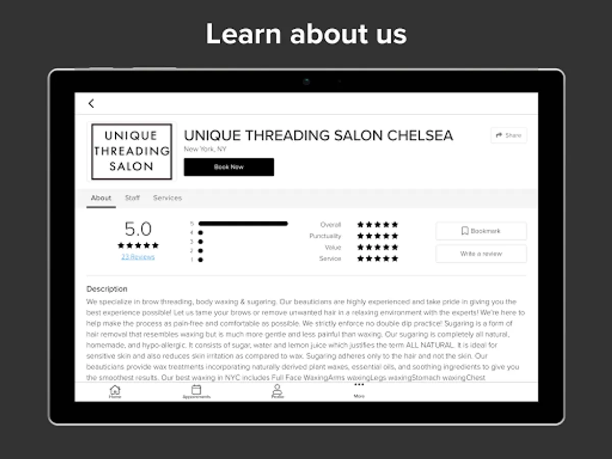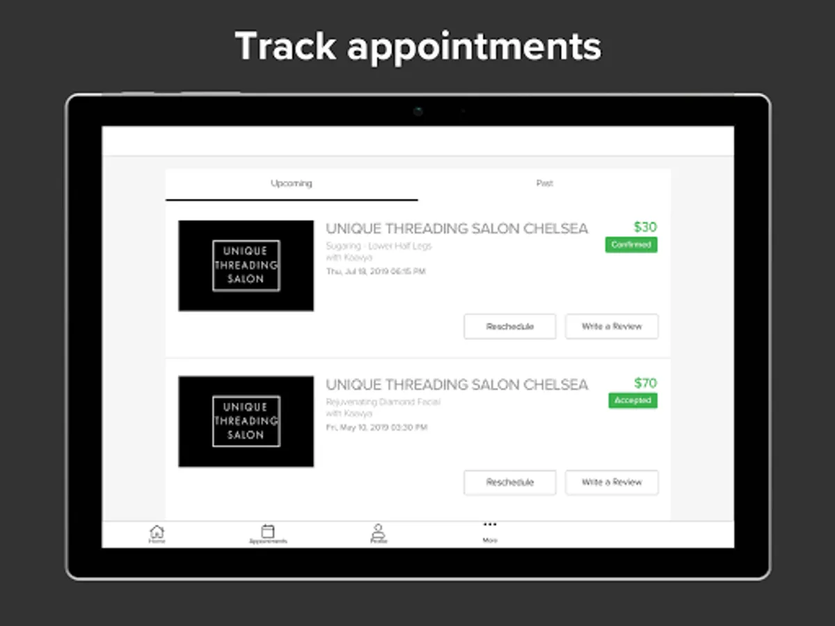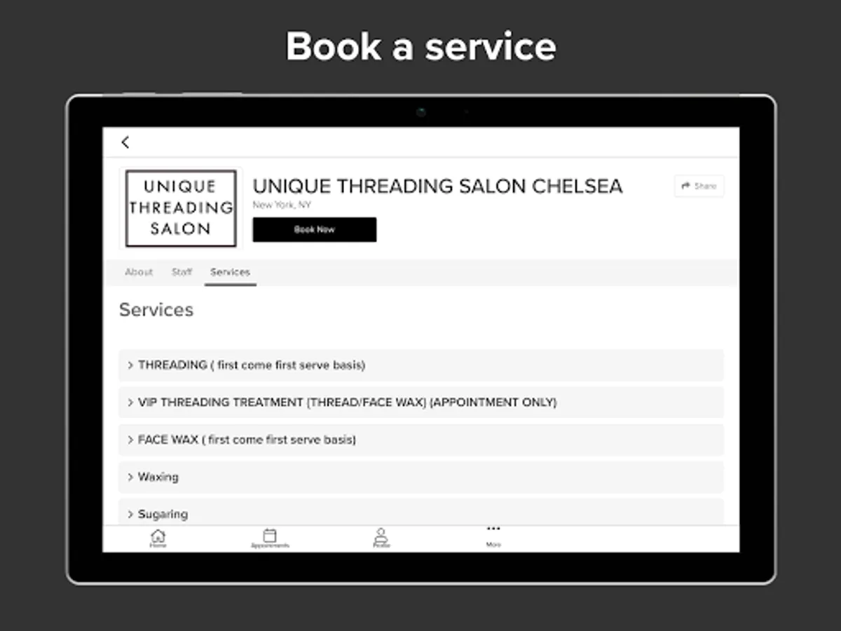With the UNIQUE THREADING SALON mobile app, booking services in the NYC area area is easier than ever!
