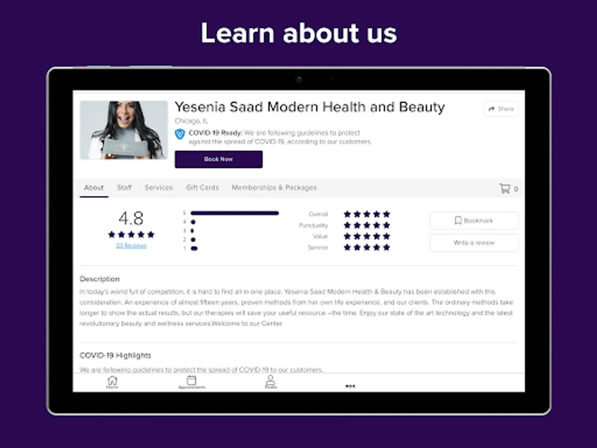 With the Yesenia Saad Modern Health and Beauty mobile app, booking beauty and wellness services in the Chicago area is easier than ever!