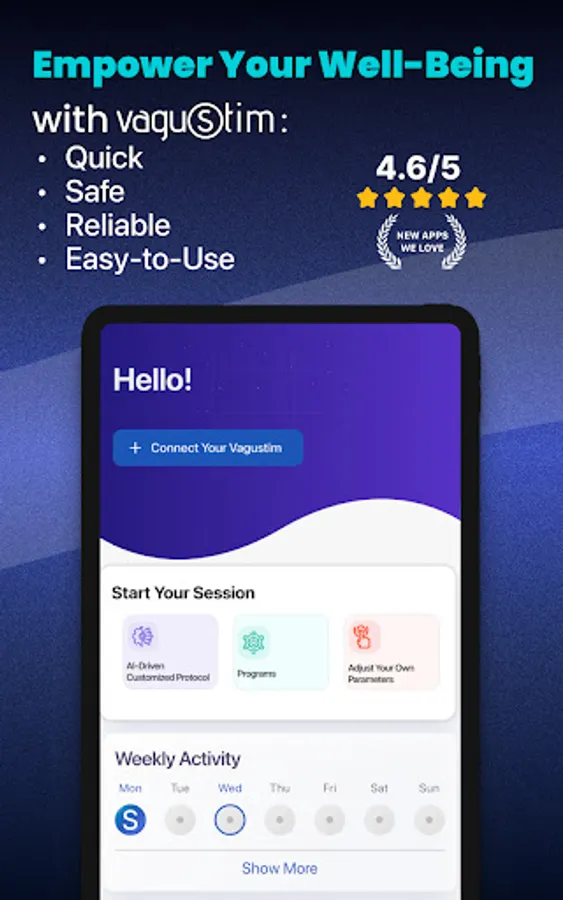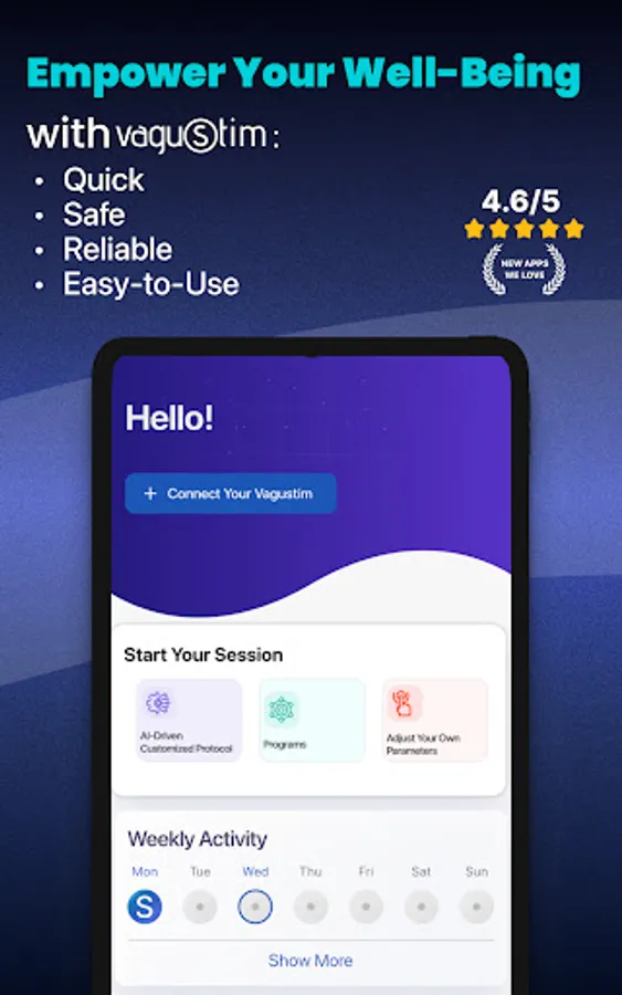 This app is intended to control Vagustim and should not be used to make medical decisions. Always consult your healthcare provider before making any health-related decisions. Vagustim is a general wellness product and is not intended to diagnose, treat, cure, or prevent any disease or condition.