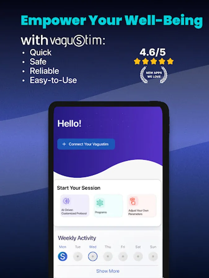 This app is intended to control Vagustim and should not be used to make medical decisions. Always consult your healthcare provider before making any health-related decisions. Vagustim is a general wellness product and is not intended to diagnose, treat, cure, or prevent any disease or condition.