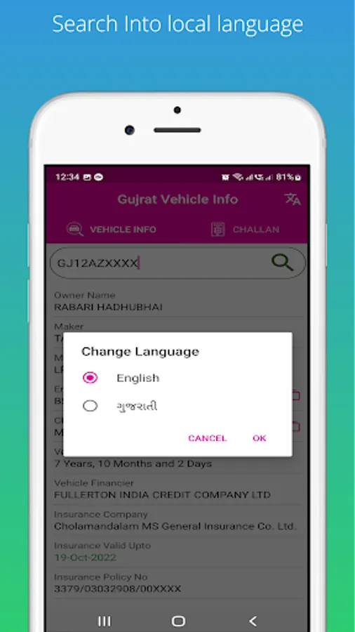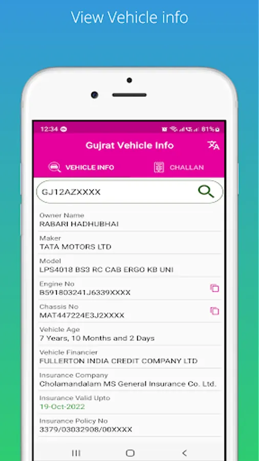 Gujrat Vehicle Information app: All India app gives you vehicle details, car info, vehicle info by using Vehicle Registration Number.