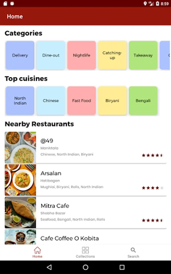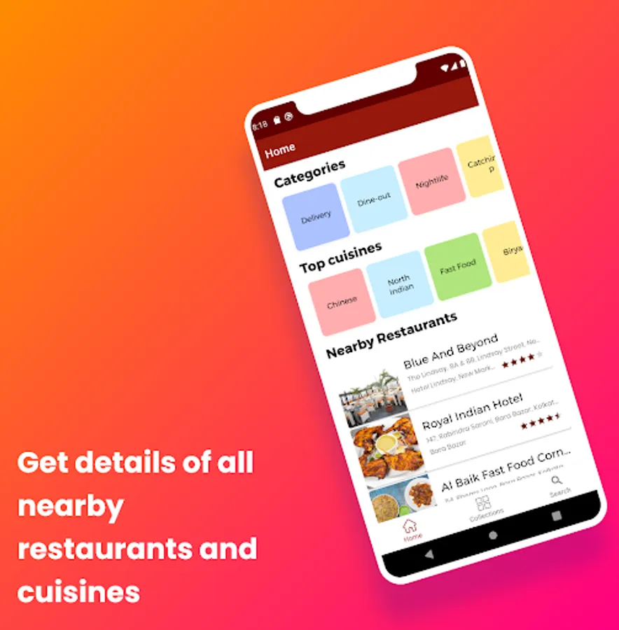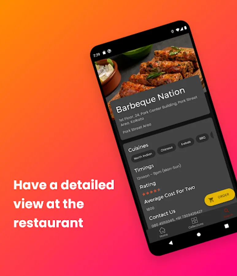 This app shows you list of all cuisines and restaurants around you , even the top categories in your city. Have a detailed view of the restaurant and order via zomato.