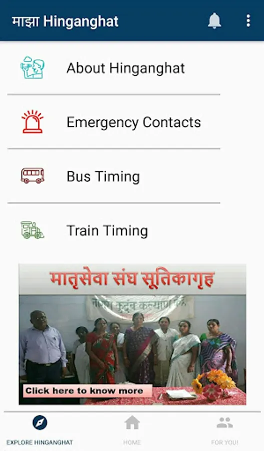 ‘MazaHinganghat’ is an all in one hyperlocal android based application, developed to provide local basic digital services to the town. ‘MazaHinganghat’ brings out numbers of services which were never before available on the online platform for Hinganghat.