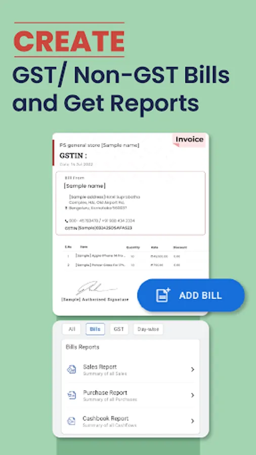 ✅ Manage all your business transactions, Non-GST/GST bills, inventory, sale & purchases with a phone.