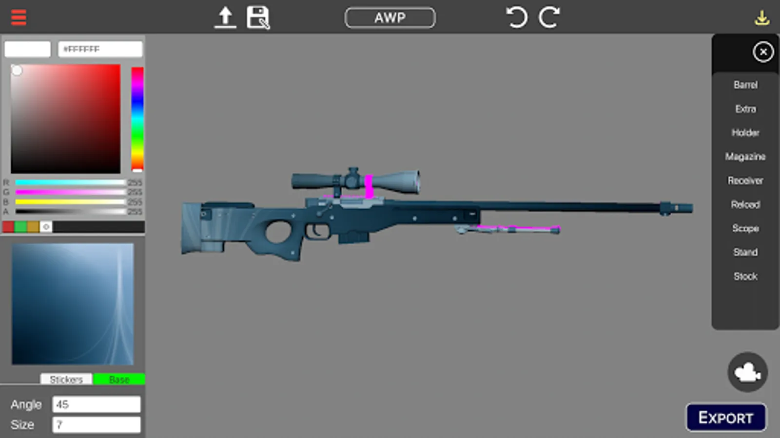 Create Counter Strike Global Offensive Skins by adding stickers on 3D Weapon Models.