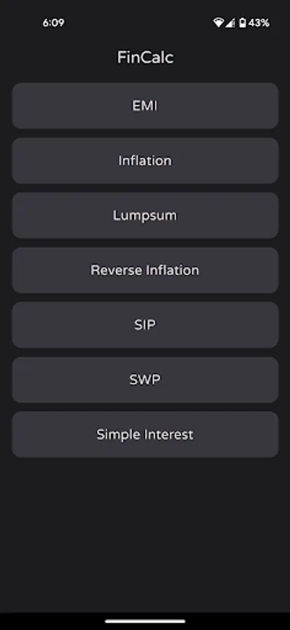 Our app is a simple and powerful financial calculator designed to help you make informed financial decisions. With this app, you can easily calculate important financial metrics such as inflation, reverse inflation, lumpsum, SIP, SWP, EMI, and simple interest.