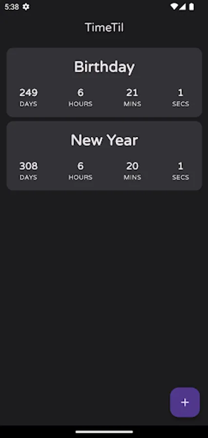 Whether you're waiting for a vacation, a birthday, a wedding, or a project deadline, TimeTil makes it simple to create countdowns and set reminders for each one.