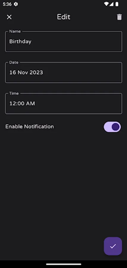 The app's clean and minimalist interface displays all your countdowns on the main screen, so you can quickly check their progress.