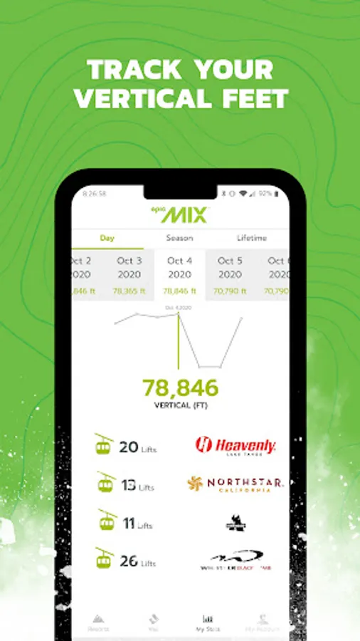 • Track the vertical feet you have skied over a day, season or your lifetime