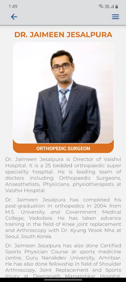 During the last couple of years the city of Baroda has witnessed variety of educational, social, religious & many other activities from the stage of VAISHVI ORTHOPEDIC HOSPITAL. It is not meant to be exhaustive treatise on any condition. The Mobile App is a mixture of information for the visiting patient, curious layman, academic Orthopod & keen Therapist. We do not aim to treat individual patients through this website but a whole lot of information is available to satiate your appetite for fitness & health. We should be updating profiles & information as and when time permits If you wish us to highlight a particular problem do let us know.