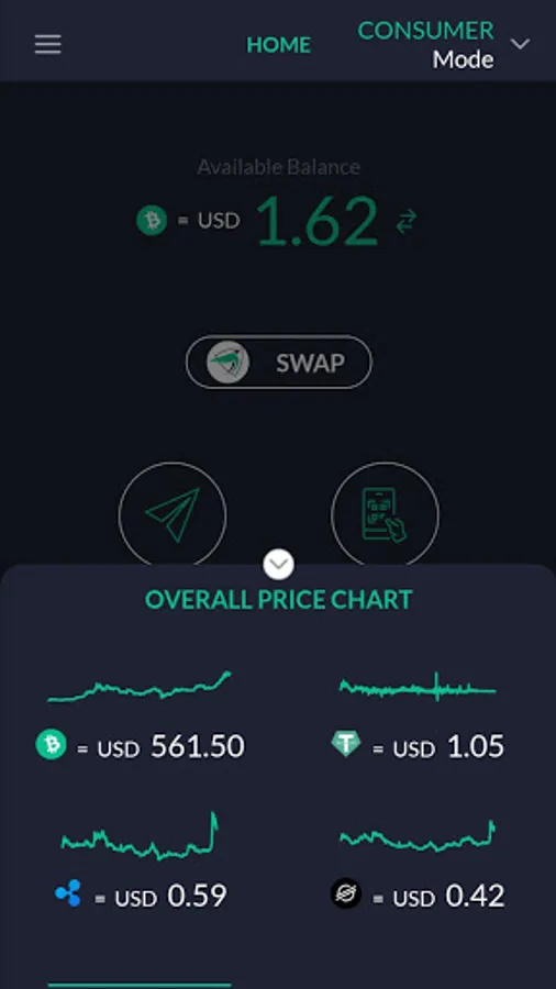 - Cryptocurrency overall price chart and available balance display