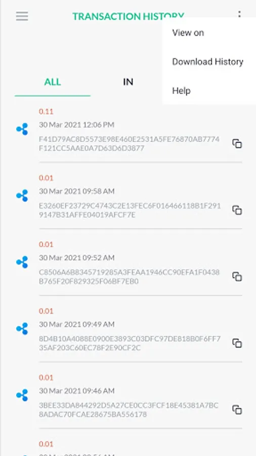 - View all transaction history items on the blockchain with a click of a button