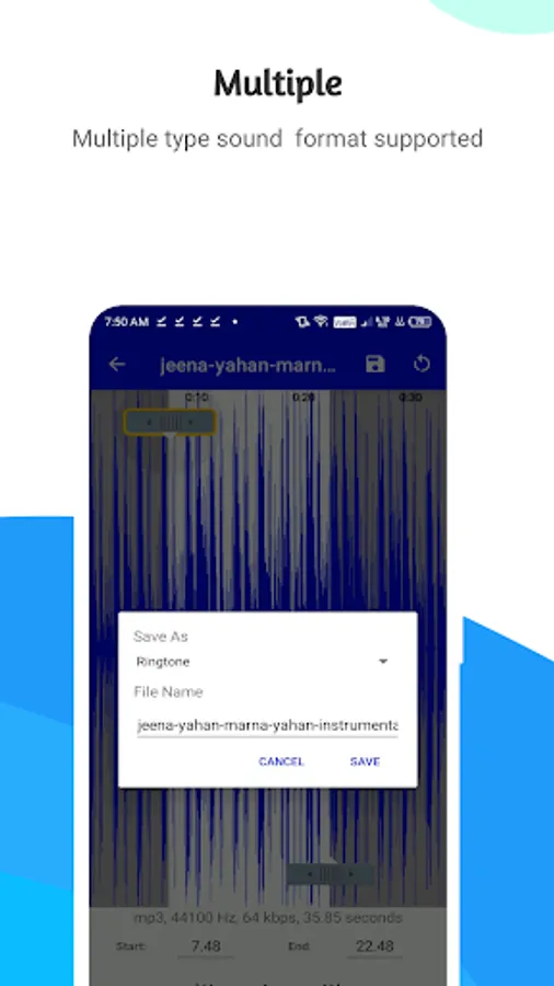 This application also support cutting and merging of audio files including MP3, WAV, ACC, WMA, FLAC, M4A, OPUS, AC3, AIFF, OGG etc. Application is designed to make music editing so easy and fun